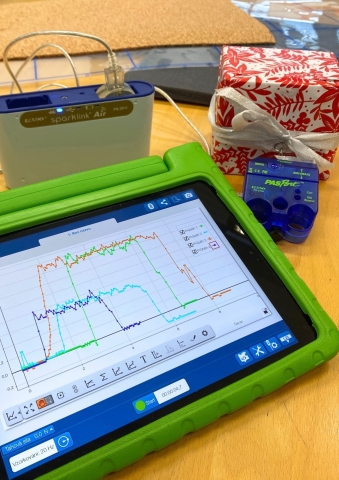 Pomůcky: různé povrchy/podložky (igelit, molitan, korek, lino, látka, …), PASCO senzor síly, SparkLink Air, iPad (nebo PC s bluetooth připojením) s aplikací SparkView (nebo online rozhraní), dáreček (libovolný předmět, který budeme smýkat)